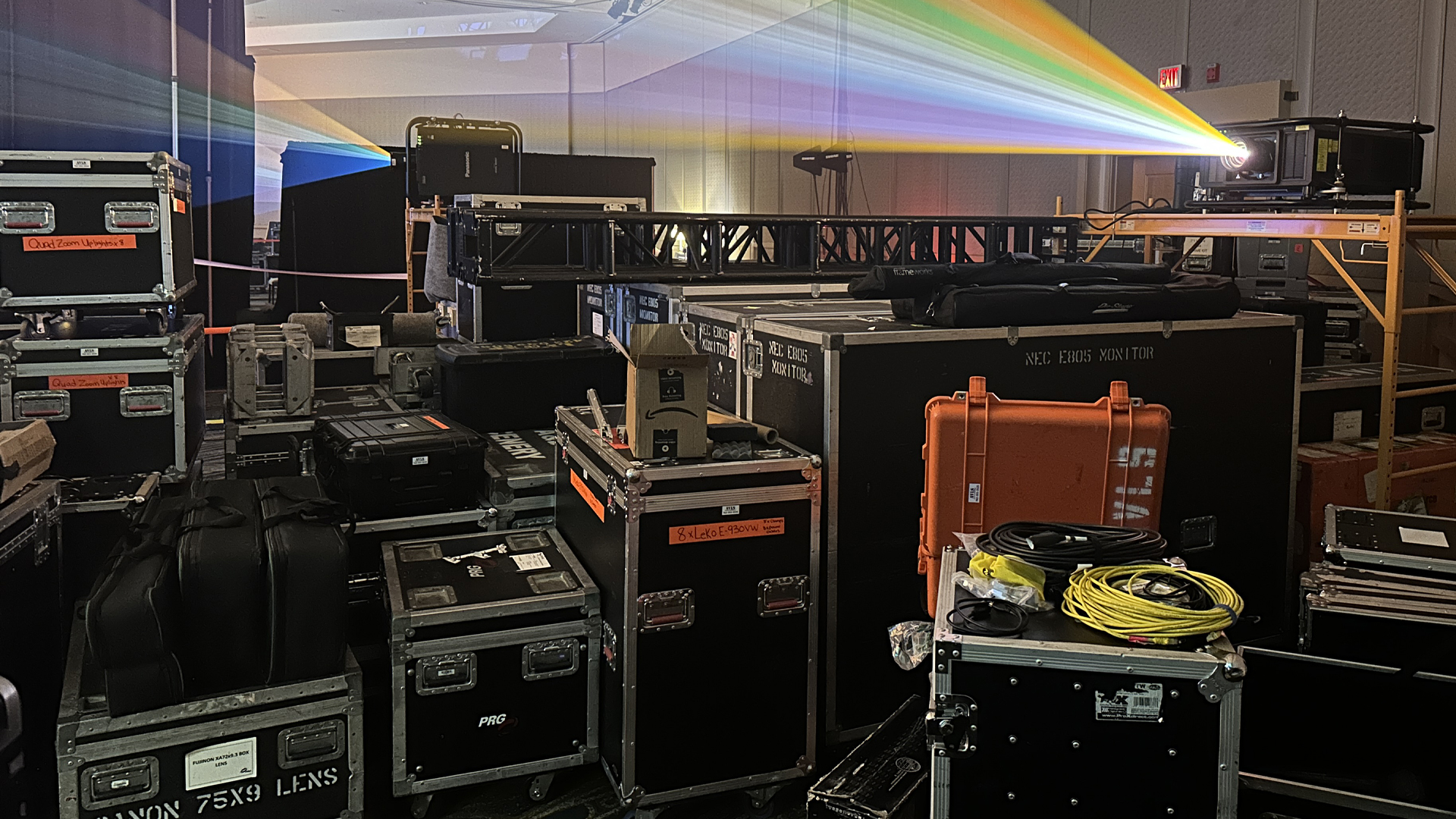 Portable stages, truss, pipe and drape, and rigging equipment.